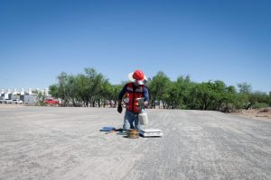 En el lugar, se realizaron diversas pruebas al terreno para dar pie a la colocación del pasto sintético y posteriormente al enmallado y trabajos correspondiente, a fin de culminar a la brevedad esta cancha, así como las que se realizan en laUnidad Deportiva Solidaridad y la colonia Abel Dávila para el disfrute de la ciudadanía.